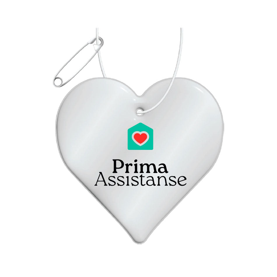 Myk hjerterefleks med logotrykk. 7cm bred.